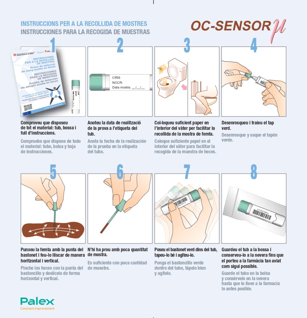 El Programa s’adreça a tots els homes i dones d’entre 50 i 69 anys i consisteix a fer-se, cada dos anys, una senzilla prova a casa per detectar si les deposicions contenen petites quantitats de sang que no es veuen a simple vista.