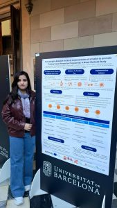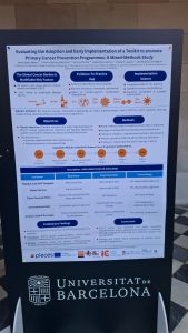 En aquest context, la doctoranda va presentar el pòster titulat «Avaluació de l’adopció i la implementació inicial d’un conjunt d’eines per promoure programes de prevenció primària del càncer: un estudi de mètodes mixtos». La seva tesi, desenvolupada en el marc del projecte PIECES, analitza com un conjunt d’eines d’implementació en línia dona suport a les organitzacions en la planificació, implementació i avaluació d’intervencions de prevenció del càncer, amb un èmfasi especial en l’adopció i la preparació organitzativa en contextos reals.